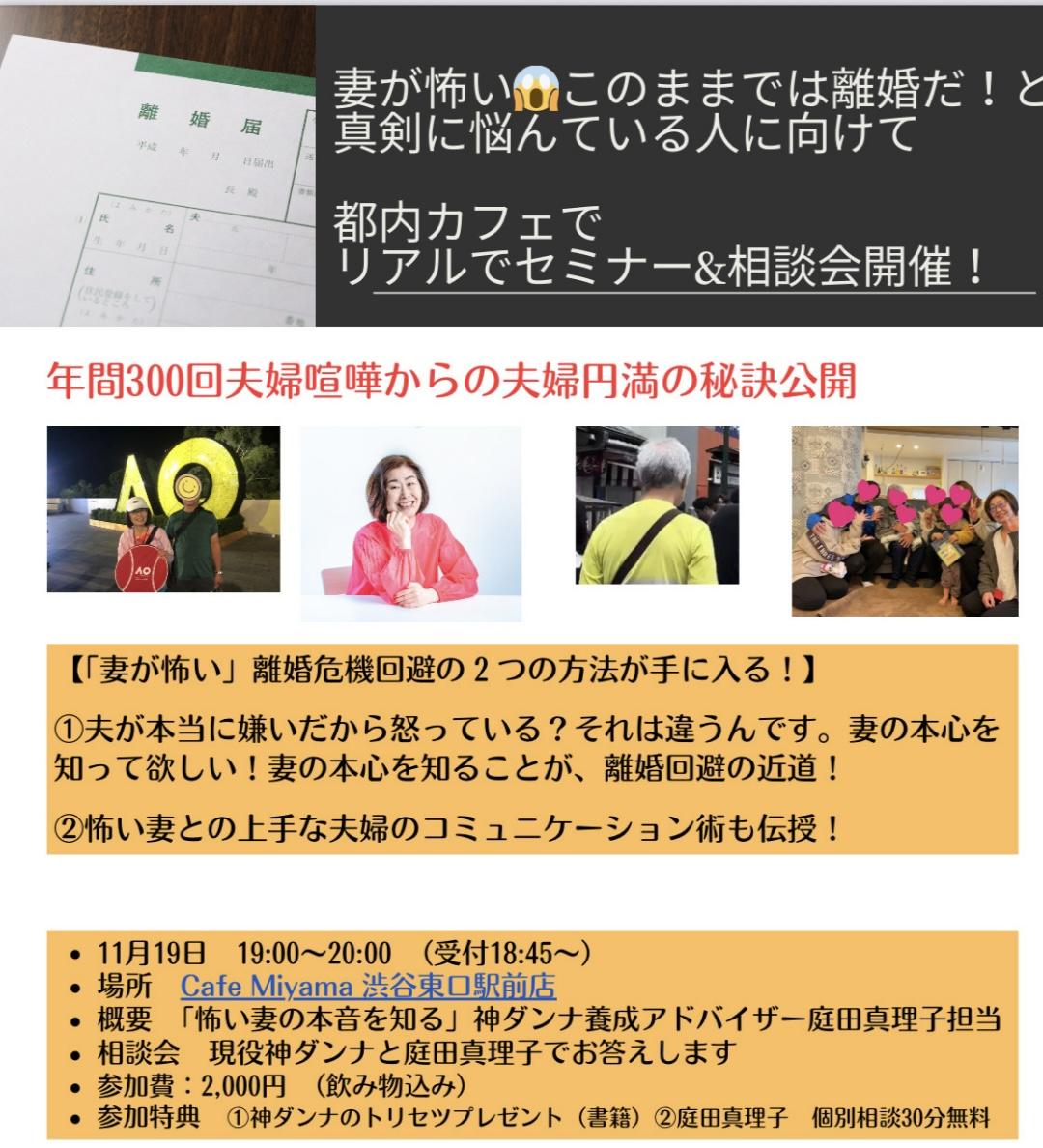 妻が怖い😱このままでは離婚だ!と真剣に悩んている人に向けて都内カフェでリアルでセミナー&相談会開催!